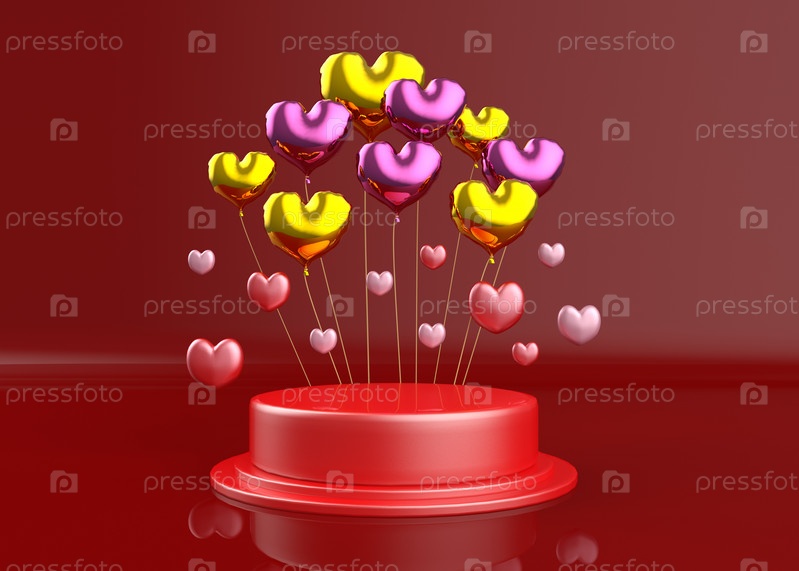 3D пьедестал с золотыми и розовыми воздушными шарами-сердцами