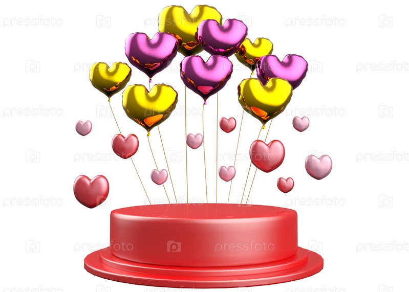 3D пьедестал с золотыми и розовыми воздушными шарами-сердцами