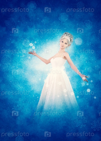 3D-рендеринг зимней эльфийской девушки со снежинками