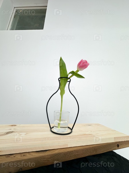 Розовый тюльпан стоит в вазе