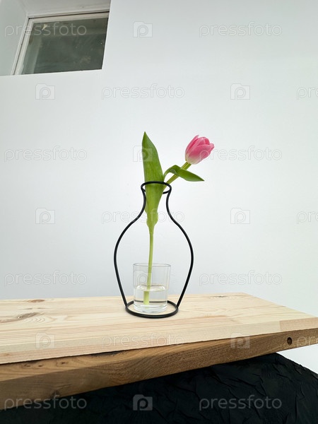 Розовый тюльпан стоит в вазе