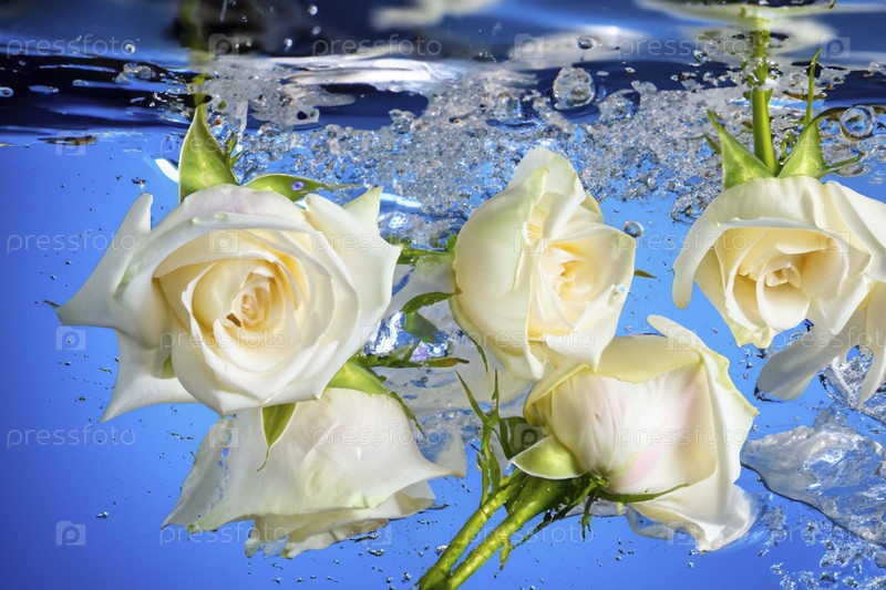Белые розы в воде