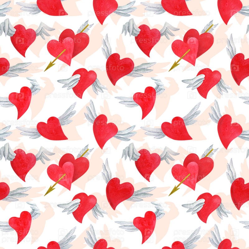С днем Святого Валентина. Акварельный бесшовный узор с сердечками. Декор ко Дню святого Валентина, свадьбы. Печать на подарочной бумаге, упаковке, обоях, одежде, текстиле
