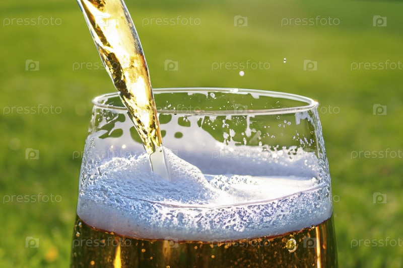Пиво на фоне травы , мягкий фокус ,размытие