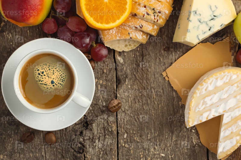 Кофе, хлеб и фрукты,мягкий фокус,шум,размытие движения,низкое разрешение