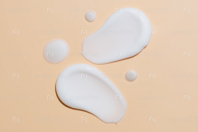 Крем для ухода за кожей, сыворотка для лица, мазок лосьона на бежевом фоне. Белый свет сливочный косметический косметический продукт размазывает крупным планом