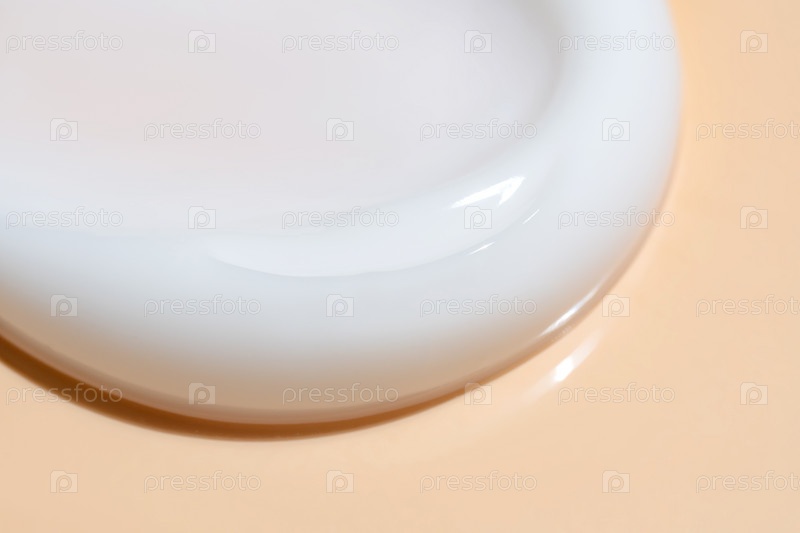 Текстура белого косметического крема. Образец лосьона на бежевом фоне. Косметический продукт по уходу за кожей, мазок, капля. Пробивной пробник BB CC-крем