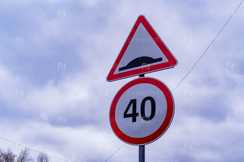 Дорожные знаки 3.24 "Ограничение максимальной скорости" и 1.17 "Искусственная неровность"