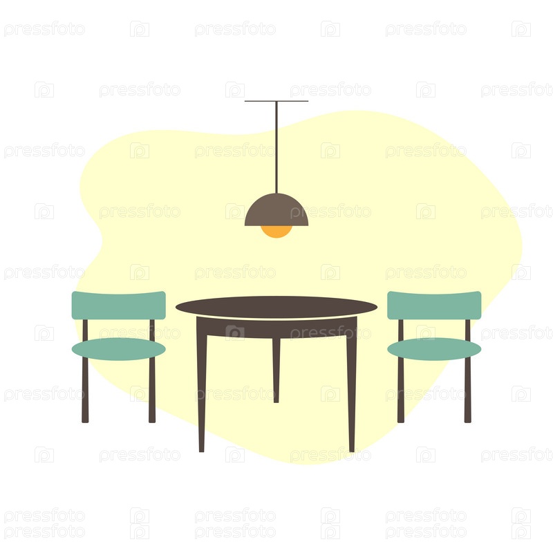 Стол и стулья в кафе или ресторане. Мебельная иконка в плоском стиле
