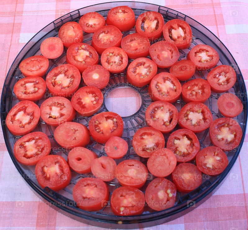 Ломтики помидор на сетке для вяления