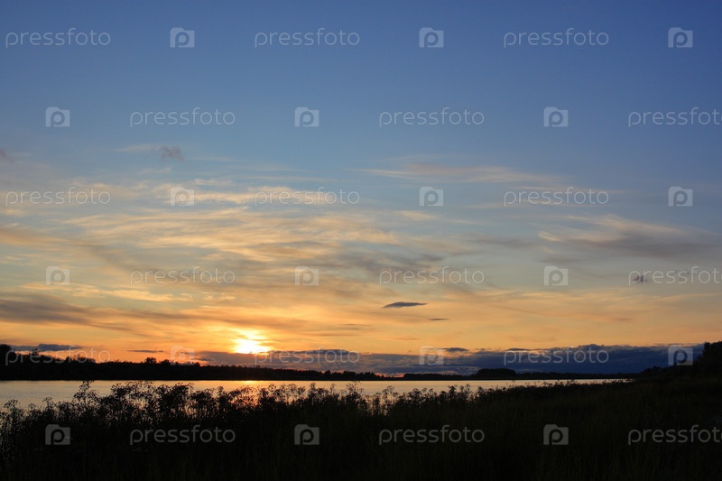 Вечер на берегу реки Иртыш в Омской области
