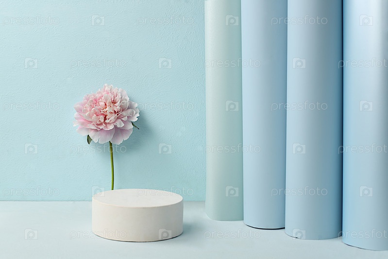 Абстрактная цветочная композиция, пустой подиум для продукта и свежие цветы пиона, сцена для демонстрации продукта и бизнес-концепции. Минимальная современная эстетика. элегантная концепция красоты, избирательный фокус