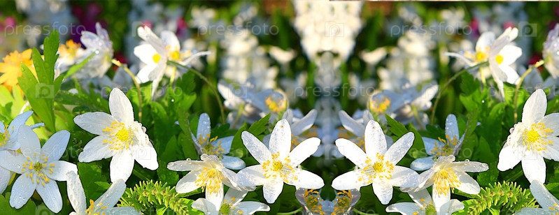 Абстрактный цветочный фон, баннер. Нежные цветы анемоны в весеннем саду. Концепция весеннего прибытия, цветочная открытка, шаблон для дизайна ,
