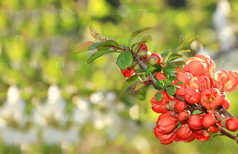 Абстрактное цветочное знамя. Нежные цветы айвы в весеннем саду. Концепция весеннего прибытия, цветочная открытка, шаблон для дизайна ,
