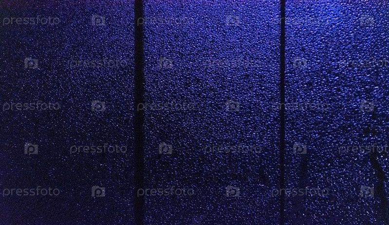 Свет сквозь капли дождя на оконном стекле, абстрактный фон ночного города в боке