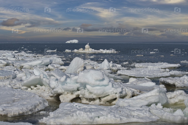 Россия. Западное побережье острова Сахалин. Живописные льдины весеннего Тихого океана