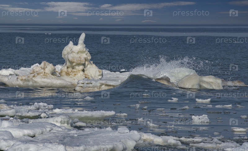 Россия. Западное побережье острова Сахалин. Живописные льдины весеннего Тихого океана