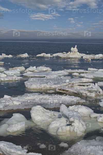 Россия. Западное побережье острова Сахалин. Живописные льдины весеннего Тихого океана