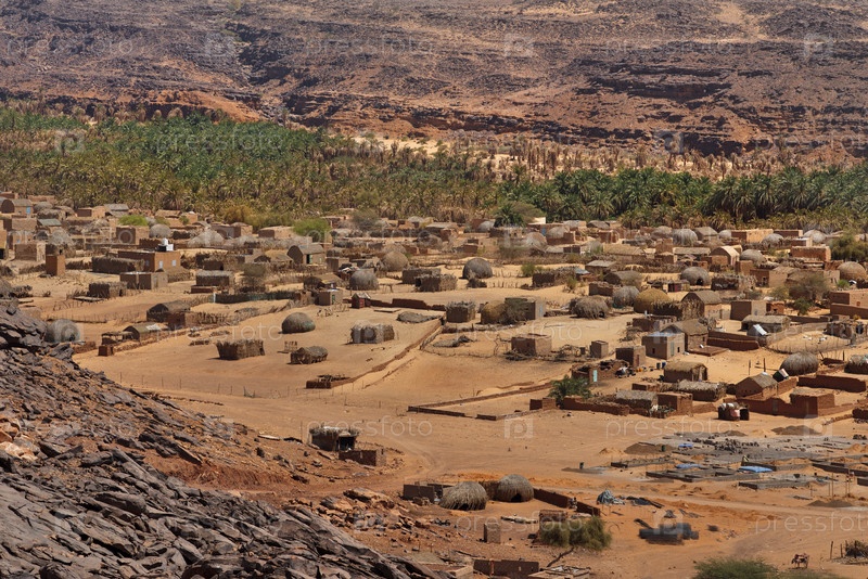 Мхайрет. Мавритания. 05 октября 2021 года. Вид с плато Адрар на оазис в долине высохшей реки на юго-западе пустыни Сахара