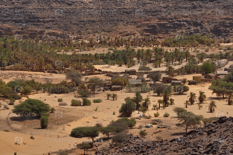 Мхайрет. Мавритания. 05 октября 2021 года. Вид с плато Адрар на оазис в долине высохшей реки на юго-западе пустыни Сахара
