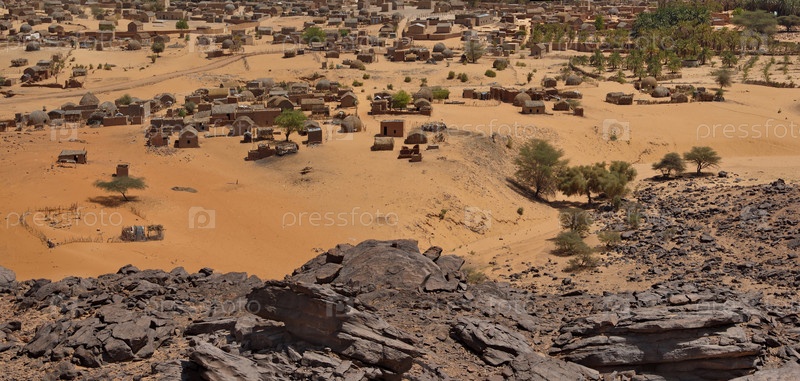 Мхайрет. Мавритания. 05 октября 2021 года. Вид с плато Адрар на оазис в долине высохшей реки на юго-западе пустыни Сахара