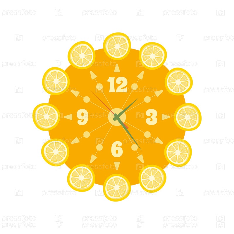 Круглые настенные часы с лимонами. Иллюстрация в плоском стиле