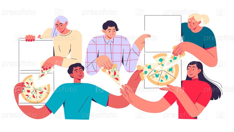 Группа людей вместе едят пиццу