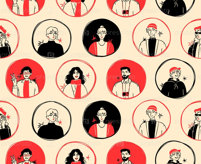 Портреты людей векторный бесшовный узор