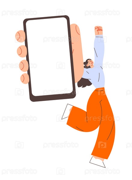 Женщина показывает экран смартфона, держа в руке мобильный телефон
