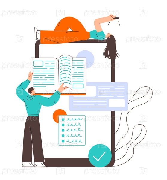 Студент учится онлайн, читает книгу, онлайн-образование