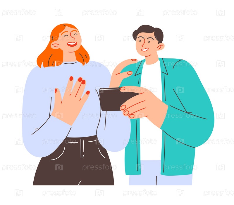 Мужчина и его друг смотрят на смартфон и смеются