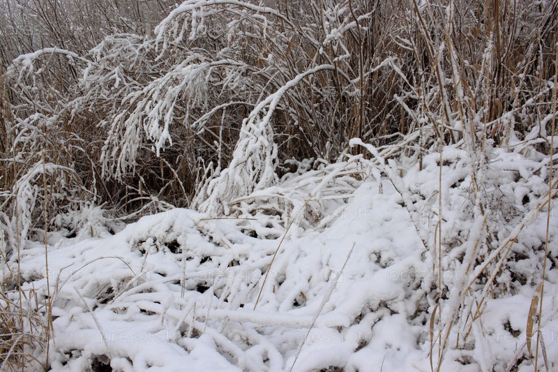 Первый снег в полях в Омской области