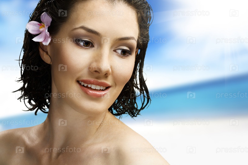 Красивая девушка на фоне пляжа