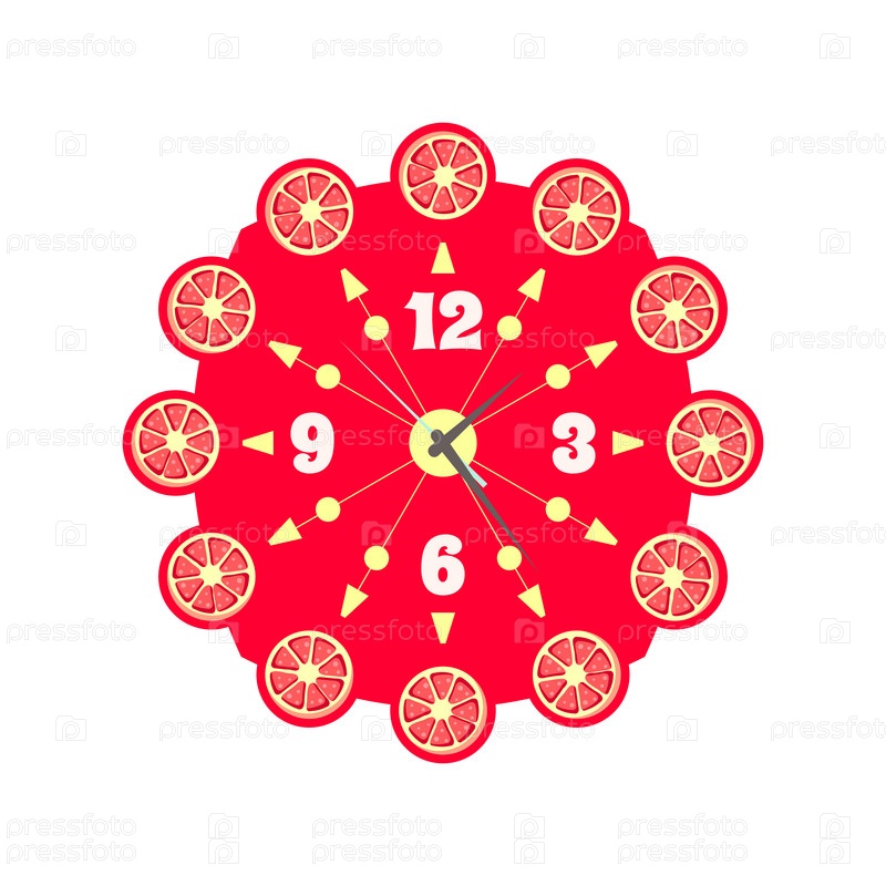 Циферблат с кружочками грейпфрута на белом фоне
