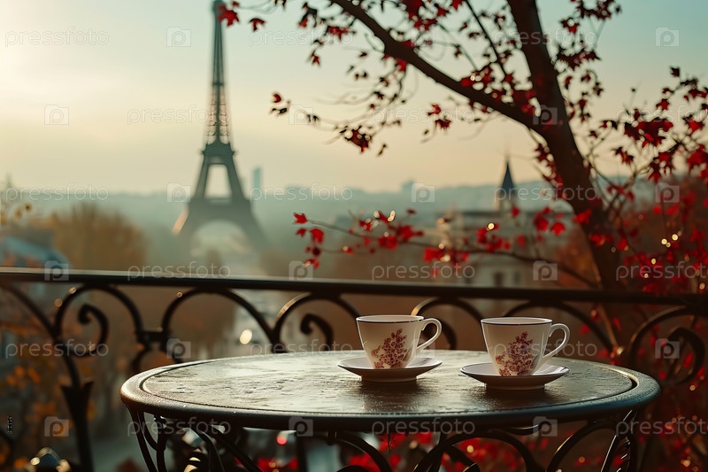 Кофе на столе и Эйфелева башня в Париже