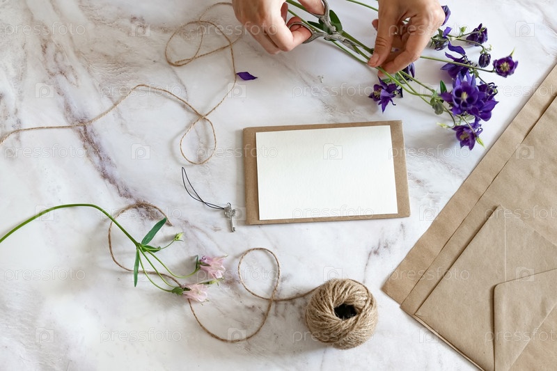 Флорист делает букет. женщина делает букет из пионов, букет из крафт-бумаги., обрезка цветов, стилит делает букет