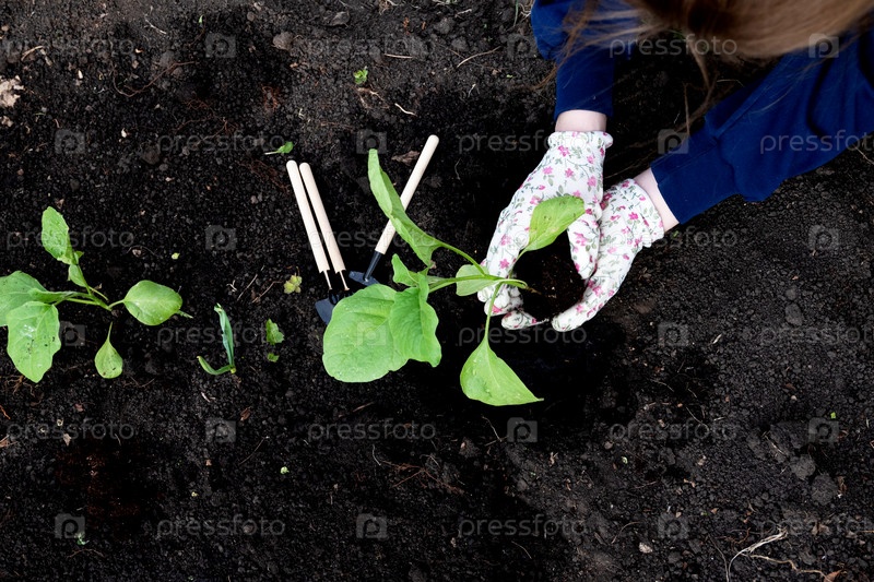 Садовник крупным планом сажает баклажаны в огороде