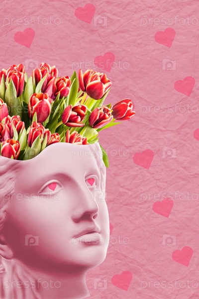 Плакат ко Дню святого Валентина 14 февраля, баннер, открытка, поздравления, журнал со старинным бюстом, сердце в милом дизайне. Романтические отношения, концепция любви с первого взгляда. Творческий коллаж