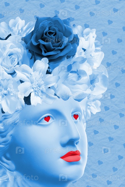 Плакат ко Дню святого Валентина 14 февраля, баннер, открытка, поздравления, журнал со старинным бюстом, сердце в милом дизайне. Романтические отношения, концепция любви с первого взгляда. Творческий коллаж