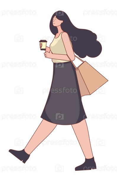Девушка держит чашку кофе и гуляет