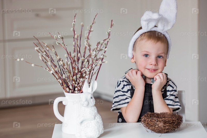 Маленький мальчик красит яйца в Чистый четверг к празднику. Готовим семью к Светлой Пасхе. В руках ребенка кисточка и яйцо