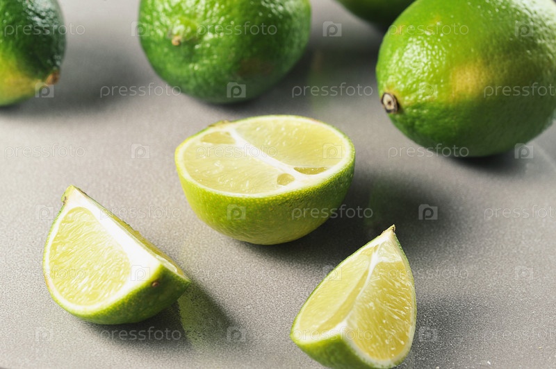 Нарезанный лайм на сером