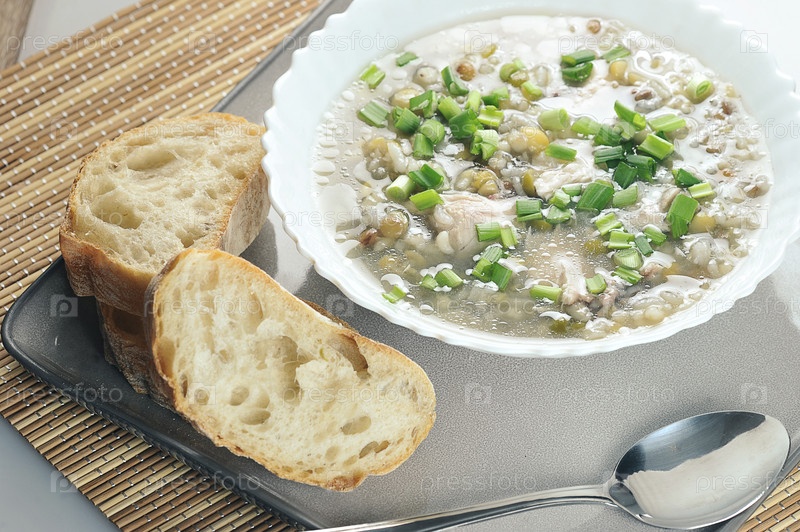 Суп с рисом, горошком и курицей