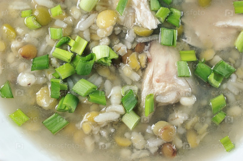 Суп с рисом, горошком и курицей