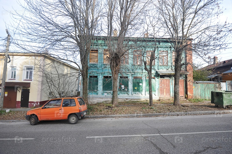 Вид на старый деревянный дом во Владимире