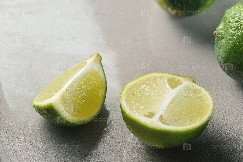 Нарезанный лайм на сером