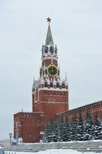 Вид на Спасскую башню Кремля на Красной площади в Москве
