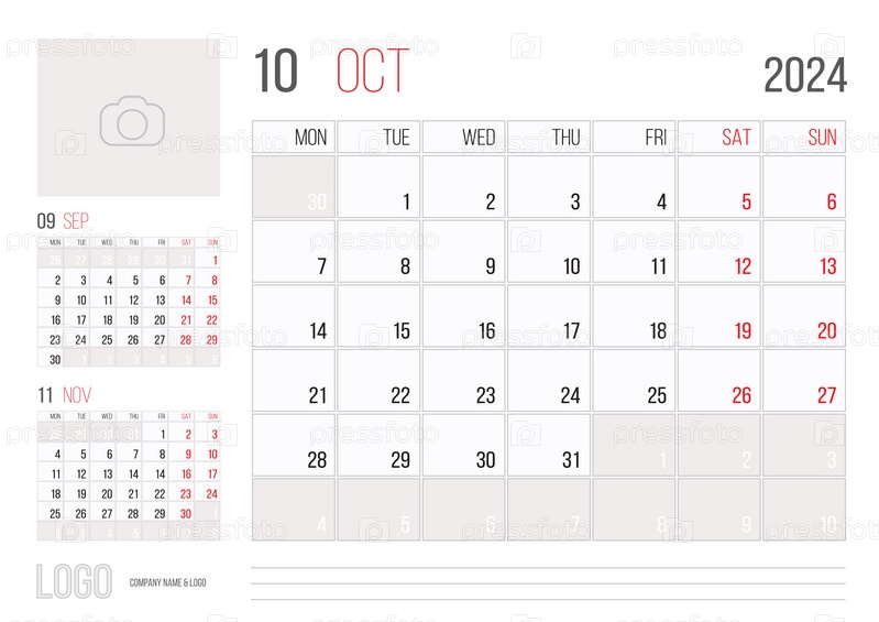 Дизайн корпоративного шаблона планировщика календаря 2024 - октябрьский месяц