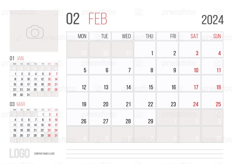 Календарь 2024 планировщик корпоративный дизайн шаблона февраль месяц