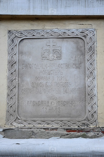 Мемориальная доска на стене Богородице-Рождественского монастыря во Владимире